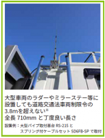 大型車両のラダーやミラーステー等に設置しても道路交通法車両制限令の3.8mを超えない