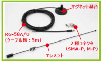 周波数 : 144MHz帯 1.7dBi (3/8λ) / 430MHz帯 4.15dBi (1/4 + 1/2λ 2段)